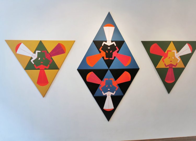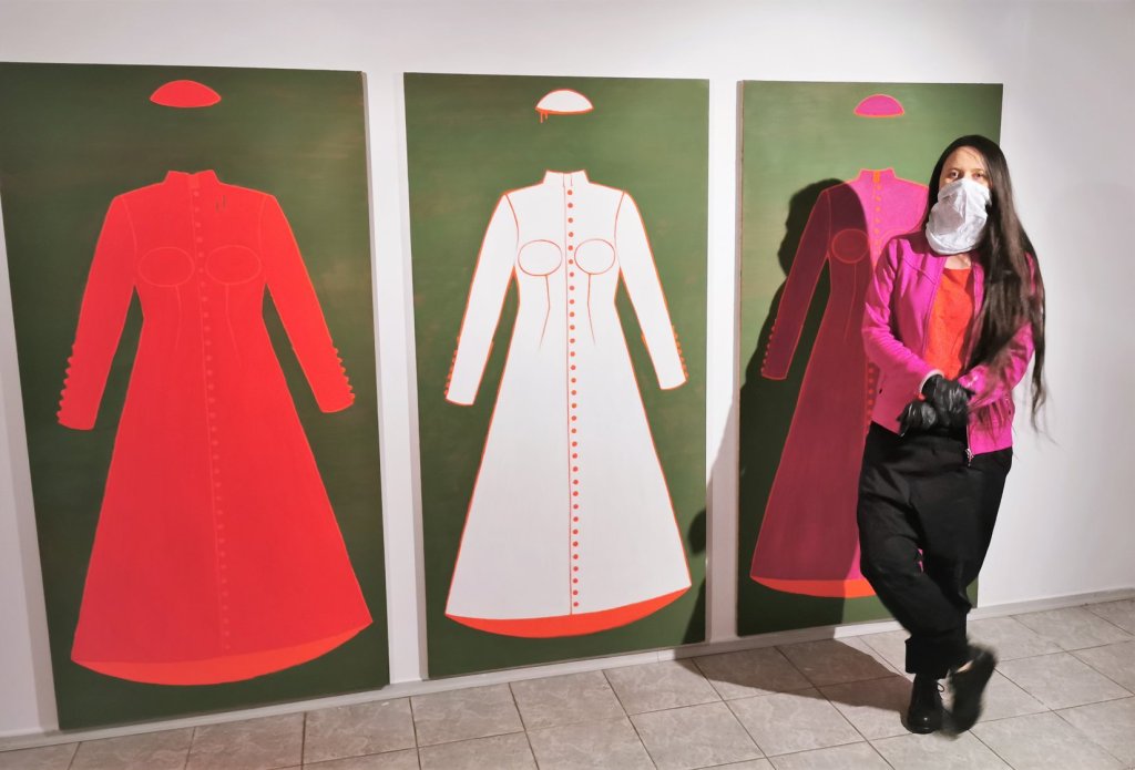 Pomysł kobiecych sutann uwiódł mnie ogromną ilością skojarzeń, które te pozornie proste formalnie prace, budzą. Kapłaństwo kobiet w wielu religiach i odłamach kościołów chrześcijańskich nie jest, i to od dawna, czymś zaskakującym. Tymczasem prace artystki, w kontekście polskiego „tu i teraz”, wydają się, jakby to określić: mocne, obrazoburcze, feministyczne. Dzięki spotkaniu z artystką mogłam lepiej zrozumieć, jak głęboko przemyślane są także pod względem warsztatowym. Wszystko i w każdym szczególe jest tu celowe. Podmalówka w czerwieni jako energia życiowa, transcendentny kobalt, zieleń przywołująca zdradzony przez współczesnego człowieka żywioł natury. Swoje znaczenie ma figura trójkąta w „puzzlowych kompozycjach” która, w wielu kulturach utożsamiana jest z żeńską seksualnością.
