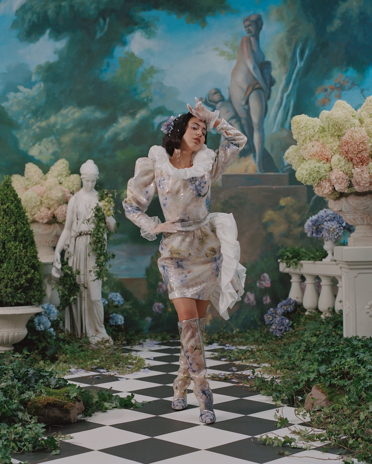 W odmienny sposób swój dyskurs z XVIII wiekiem prowadzi młoda amerykańska fotografka Daria Kobayashi Ritch. Jej cykl zdjęć dla domu mody Rodarte (s/s 2020) nie ma awangardowej szorstkości projektu Sherman ale, na swój delikatny i uroczo przewrotny sposób, posługuje się motywami z kręgu sztuki rokokowej właśnie. Na tle pejzażowego tła, które jest cytatem z fragonardowskiej „Schadzki”, w krzyczącej sztucznością przestrzeni studia, skonstruowanego jak atelier XIX wiecznego fotografa, pozują… kobiety. W pierwszej chwili ma się ochotę powiedzieć jak Diderot: za dużo w nich min, minek, maniery afektacji, kojarzą się ze szminką, pudrem, frędzelkami i faramuszkami. Jednak w tej mgle z tiulu, furkocie pomponów i falban tym razem kobiety wygrywają 5:0. Bo to już nie rokokowe damy, które dla zrealizowania swoich ambitnych celów muszą odwiedzić alkowy wielkich tego świata, ale emanujące pewnością siebie współczesne kobiety, aktorki kreujące ten typ postaci w swoich filmach: Kirsten Dunst czy January Jones. Jeśli, jak podkreśla teoria sztuki, kategoria „przyjemności” była wkładem rokoka w europejską kulturę wieku XVIII, to w zdjęciach letniej kolekcji Rodarte „przyjemność” staje się udziałem współczesnych silnych kobiet a pierwiastek męski? No cóż, jest tu… Wielkim Nieobecnym.