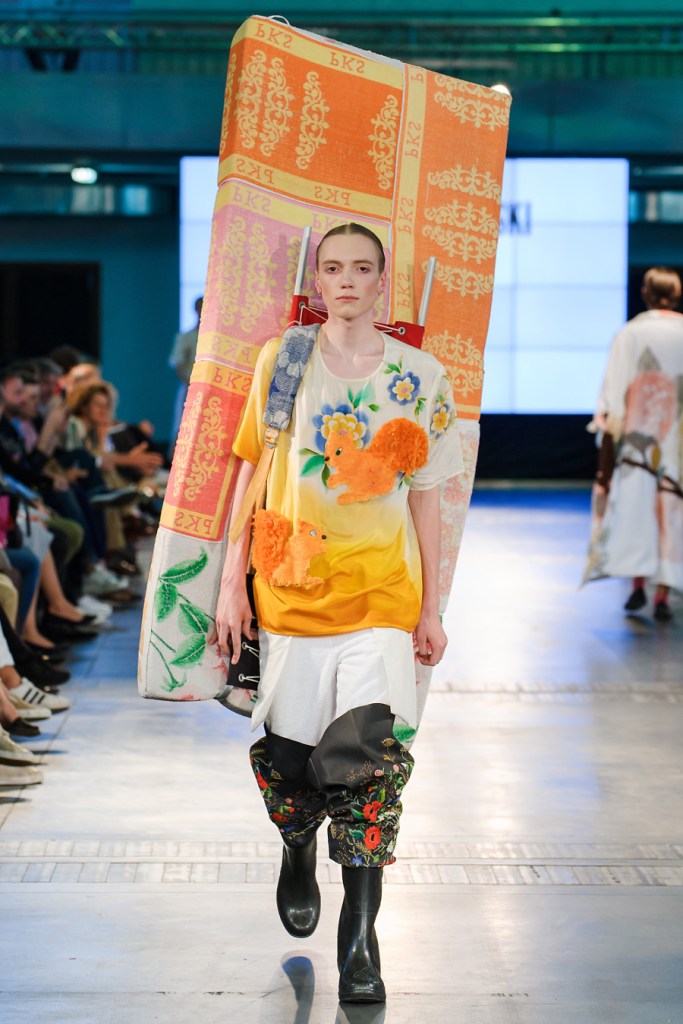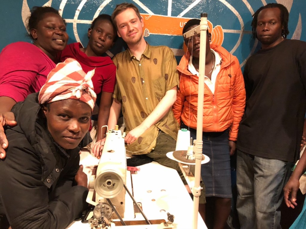 Na publikowanych w mediach społecznościowych z końcem 2019 r. zdjęciach z jego pobytu w Kenii widać uśmiechniętych ludzi połączonych celem, szkice projektów na kartkach papieru, przymiarki, aplikacje utrzymane w cudownie naiwnej estetyce niedoskonałości. Tak właśnie motywy z muralu Małgorzaty Mirgi-Tas wdarły się pętelkowym haftem na ryżowe worki, bawełniane płótna i dziergane szydełkowe aplikacje, a wraz z nimi na płaszcze, kurtki i koszule wyrysowane przez polskiego projektanta, a potem zszyte już w Polsce przez Halinę Bednarz z resztek tkanin kupionych w niewielkich sklepach i małych hurtowniach – w Swarzędzu, Toruniu i Nowym Targu. Na samym końcu wszystkie projekty objawiły się w przestrzeni warszawskiej galerii LETO jako rodzaj interdyscyplinarnej instalacji, wystawy, która była jednocześnie wydarzeniem artystycznym i promocją sprzedaży ubrań, wytwarzanych rękami członkiń Spółdzielni Ushirika (wszystkie dostępne online na stronie spółdzielni > link, jednocześnie zapewniam, że udostępniam link bez żadnych finansowych korzyści dla mnie).
