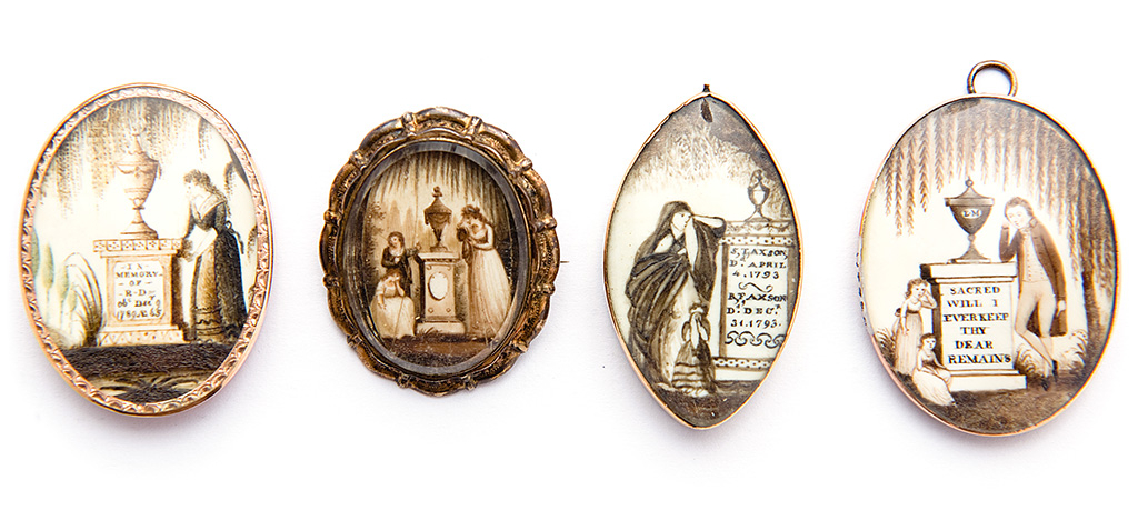 Na przełomie XVIII i XIX wieku amulety po zmarłych miały budzić serca, ożywiać wspomnienia. W Anglii przyoblekły się z czasem w formę ekstremalną, gdzie w wiktoriańskich klejnotach przechowywano pukle włosów zmarłych bliskich. W kolczykach, pierścionkach, broszkach i medalionach utkane z ich włosów wierzby płaczące pochylały się nad urnami zmieniając wezwanie memento mori w memento ilius czyli pamiętaj o mnie.
