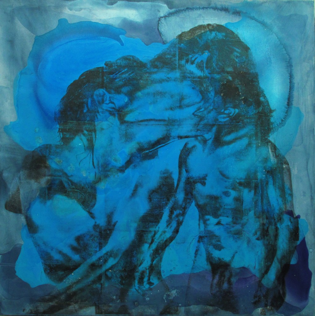 Nic w wylaniu lub kapaniu farby, które tworzą jej prace nie jest pełnym spontanem. Poprzedzone długimi badaniami nad fizykalnością autorskich mieszanek, obrazy Izabeli są takim samym majstersztykiem pod względem formalnym, jak tradycyjne realistyczne malarstwo figuratywne, które zresztą nie jest jej obce, a od którego świadomie i stopniowo ostatecznie odeszła. W tekście do wystawy artystki Ustroje w galerii Arttrakt z 2014 r. tak pisała o nich Małgorzata Garapich: wybrzuszają się, falują, połyskują i spływają, napięte między tym co zastygłe i ustalone, a nieprzewidywalnością pulsującej materii. We wnętrzach wielu tych malarskich organizmów przelewa się „żywa” farba, a przekroczenie granic ich wytrzymałości, grozi – dosłownie – wybuchem albo zalaniem. Owe prace są bardzo à propos temperamentu samej artystki, która przyznaje, że jest naturą porywczą i namiętną. Stąd ponoć w jej twórczości dużo czerwieni. Z drugiej strony, przez bite 3 godziny mojej wizyty w pracowni, spotkałam też Izabelę spokojną, empatyczną i do szpiku prawdziwą. Ta strona jej natury zapisuje się na obrazach kolorem niebieskim. Artystka nawiązuje w ten sposób do koncepcji kształtu ciągłości Zdzisława Jurkiewicza. Tak zrobiła w performansie DO TWARZY MI W NIEBIESKIM z 2011 r. w Galerii Entropia, kiedy zamknięta w galeryjnej sali naga, pomalowana na czerwony kolor, systematycznie pokrywana była kapiącą z sufitu błękitną farbą. Barwy te odnalazłam także w pracowni, na jednym z jej najnowszych spektakularnych obrazów (fot.3), który będzie można już 27 listopada tego roku zobaczyć w warszawskiej Galerii Foksal.