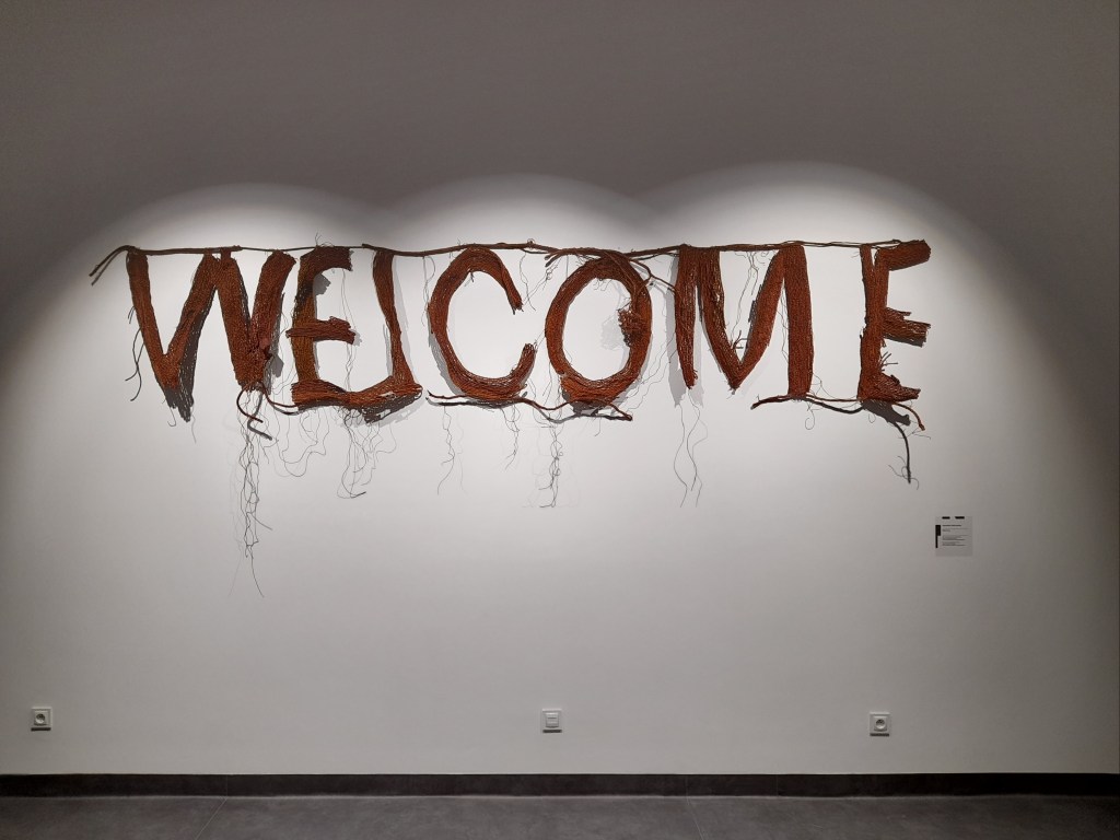 Dreszcz przebiegł mi po plecach na widok tej pracy. Oglądać ją w połowie listopada 2021 r. było mrożącym krew w żyłach spotkaniem z czystej wody profetyzmem. Stary kontynent i jego geograficzne przedpola już od początku XXI w. stały się sceną kryzysu migracyjnego. Biały Europejczyk, korzystający przez wieki z wymuszonej gościnności odległych kultur i ziemi stanął przed koniecznością skonfrontowania się w praktyce z niesionymi na swoich sztandarach hasłami liberalizmu i miłości bliźniego. W realnym starciu z rzeczywistością ten drugi szybko zmienił się w obcego. Welcome Agnieszki Kalinowskiej obnaża fałszywość gestu i fasadowość słowa – powitania, a użycie w obiekcie języka angielskiego, roszczącego sobie prawo do tytułu międzynarodowego, pogłębia dysonans między jego znaczeniem a realnie wykonywaną czynnością więc… jak Martyna Jastrzębska W gniewie zaciskam pięści. Jest tyle do tego powodów. Zaciskam pięści: na to co jest, co było, co być może. Ostatnio zbyt często. Chciałabym rzadziej.