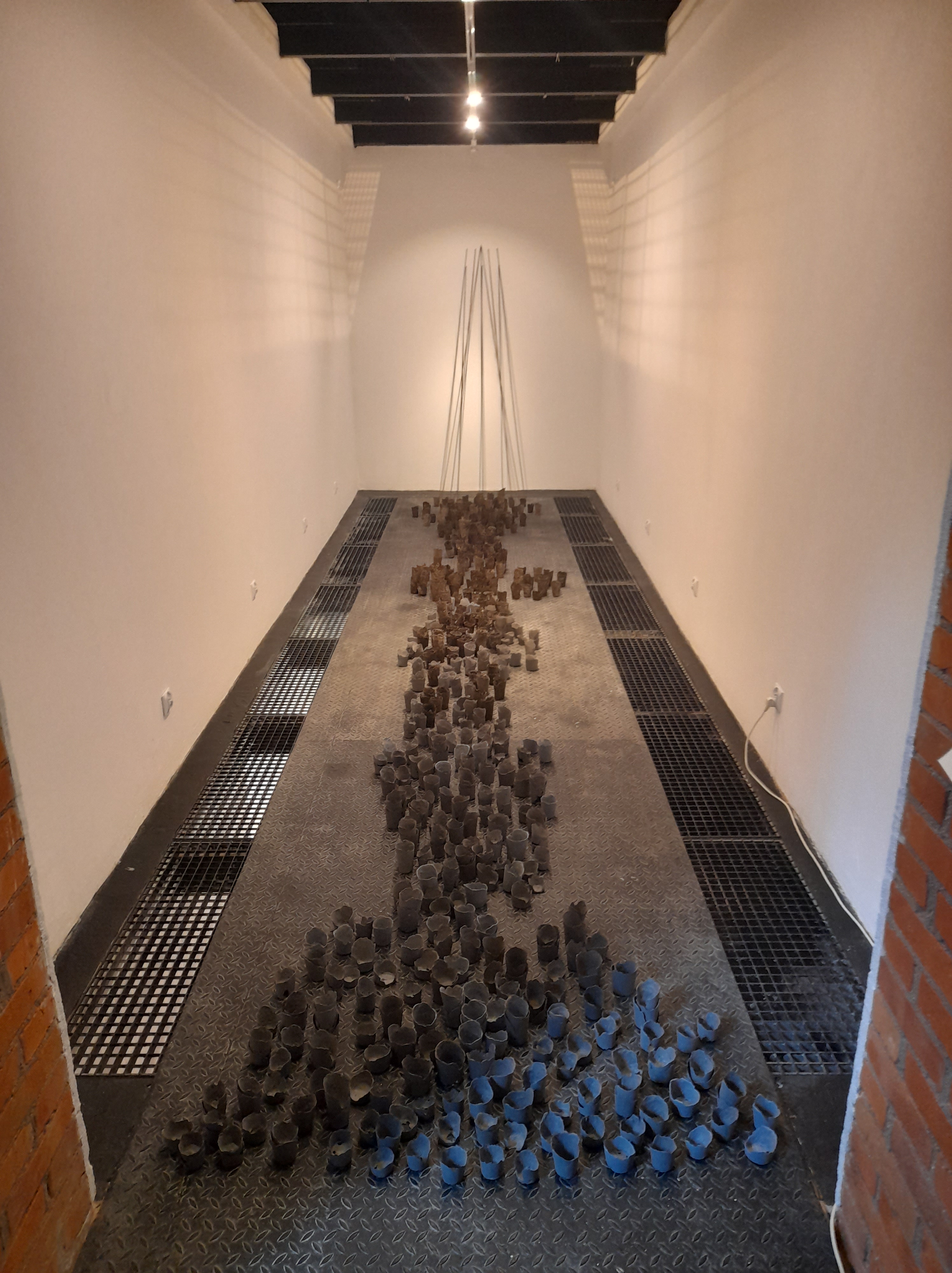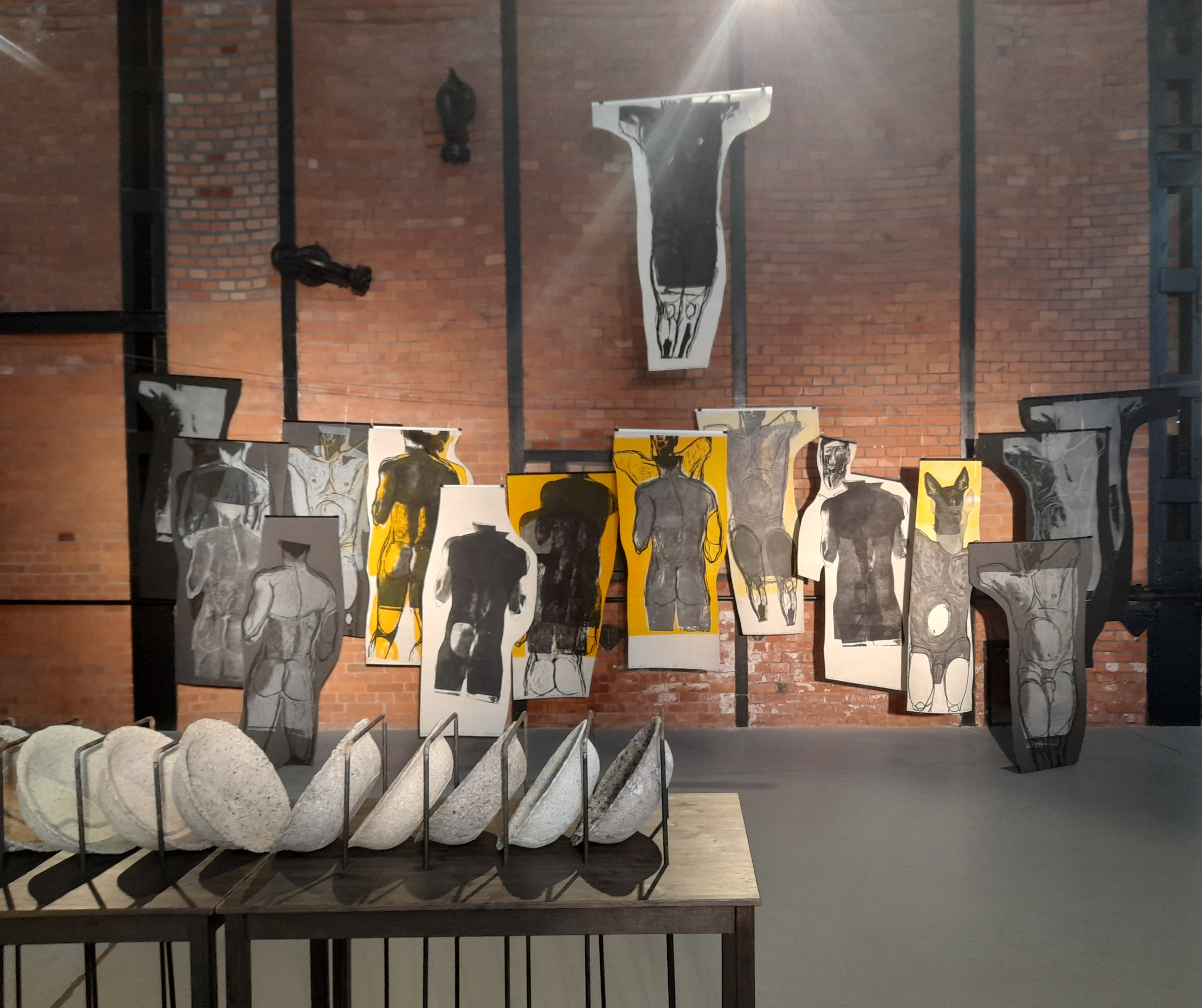 Obok formalnych poszukiwań w kierunku konstruowania i rekonstruowaniu wizji świata rzeczy i przestrzennych proporcji form idealnych Bożeny Klimek-Kurkowskiej (Rzeka, 2022, Ciągi wertykalne, Ciągi horyzontalne, 2017) na wystawie spotykamy Katarzynę Pietrzak, artystkę deklarującą pasję dla warsztatu graficznego (Zawieszeni, 2020-22).