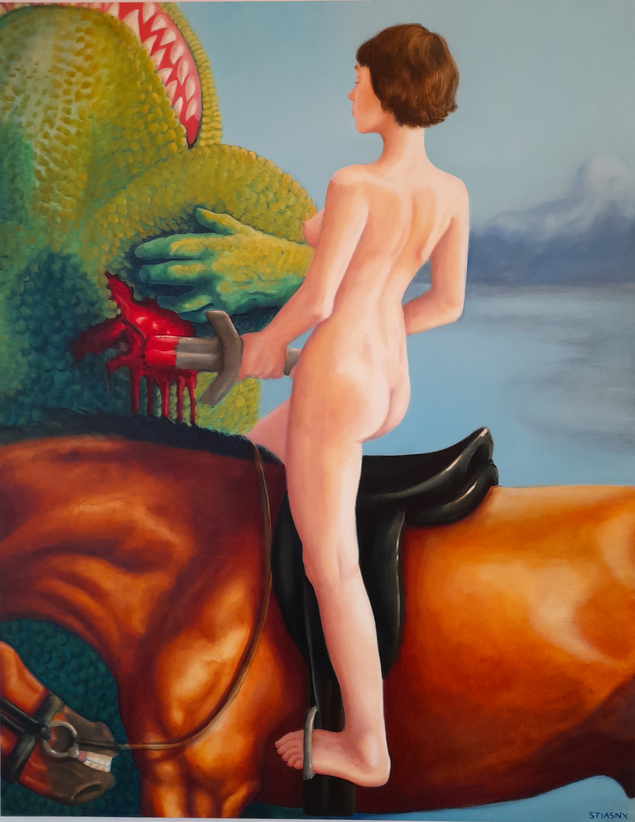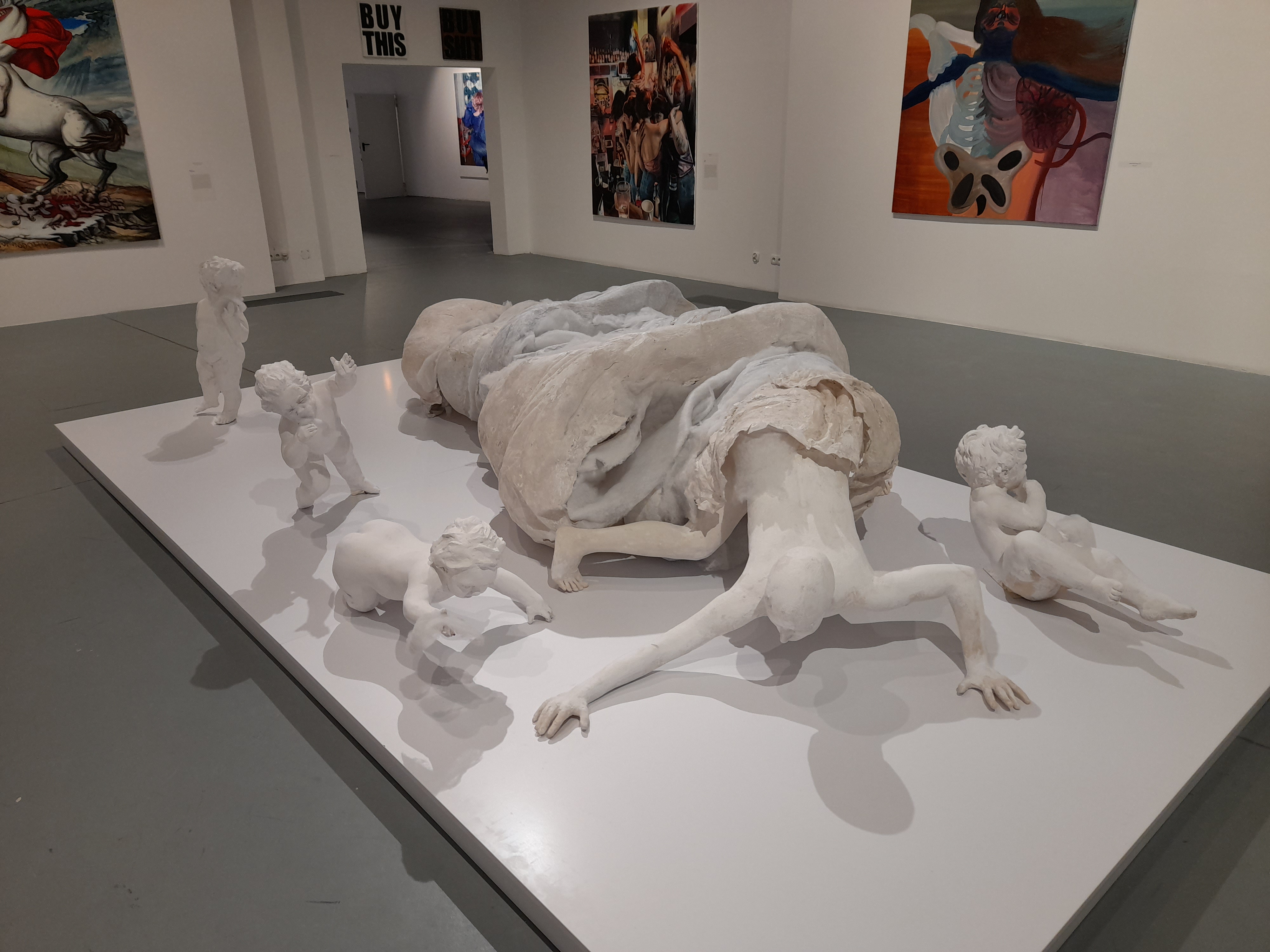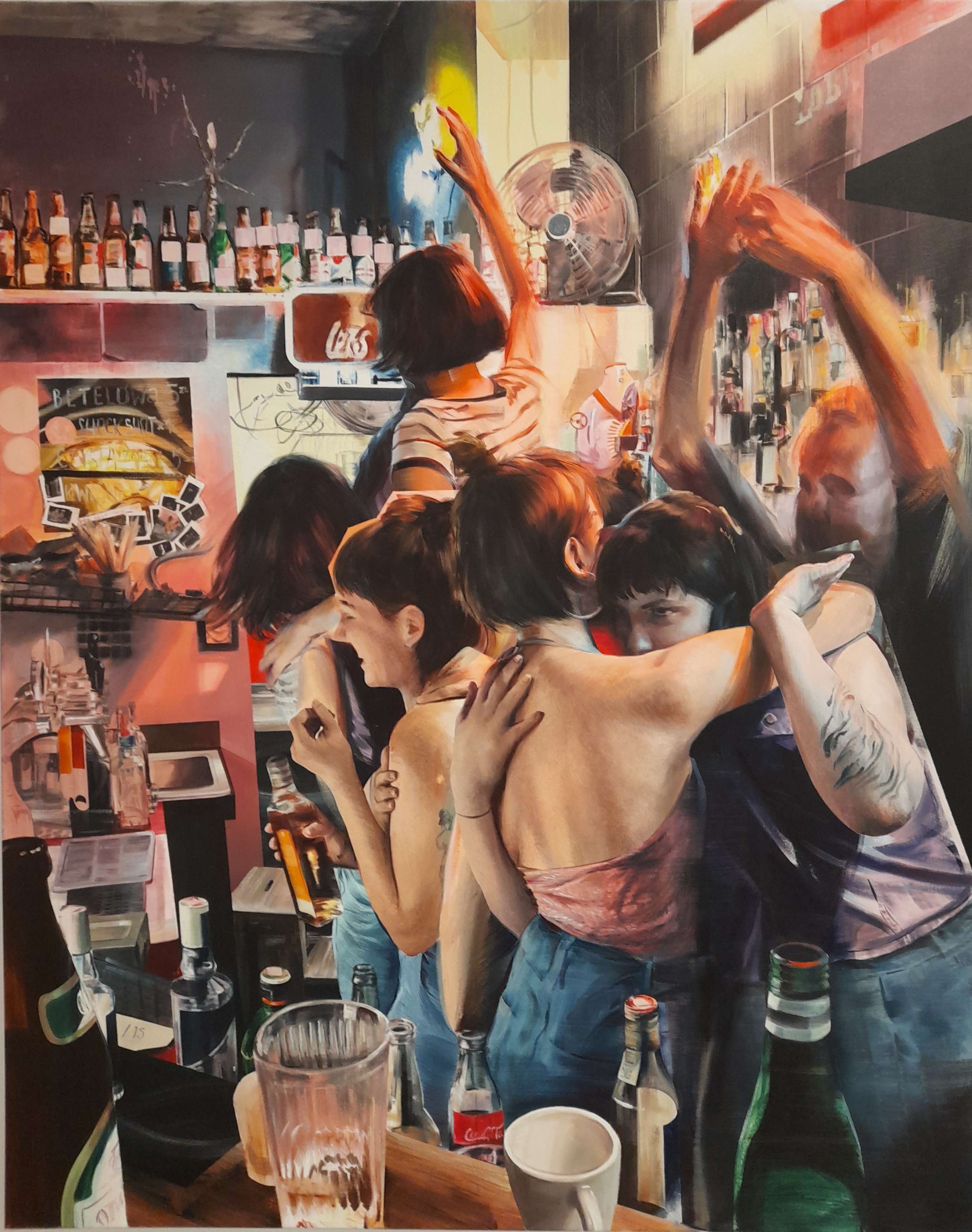 W swojej twórczości artystki przeprowadzają krytykę przybierającego infantylne formy poczucia dumy narodowej, jak robi to w obrazie Polska mielonka z 2018 r. Sabina Twardowska, lub też diagnozę w dziedzinie antropologii współczesności, jak w swoim Idolu z 2019 r. pokazuje Agata Kus. Ta fascynująca kompozycja wiedzie nas od pseudo-realistycznego kadru rzekomego zdjęcia z krakowskiego baru, do transowo-surrealistycznej przestrzeni, w której bohaterowie oddają się magicznemu obrzędowi weekendowej biby.