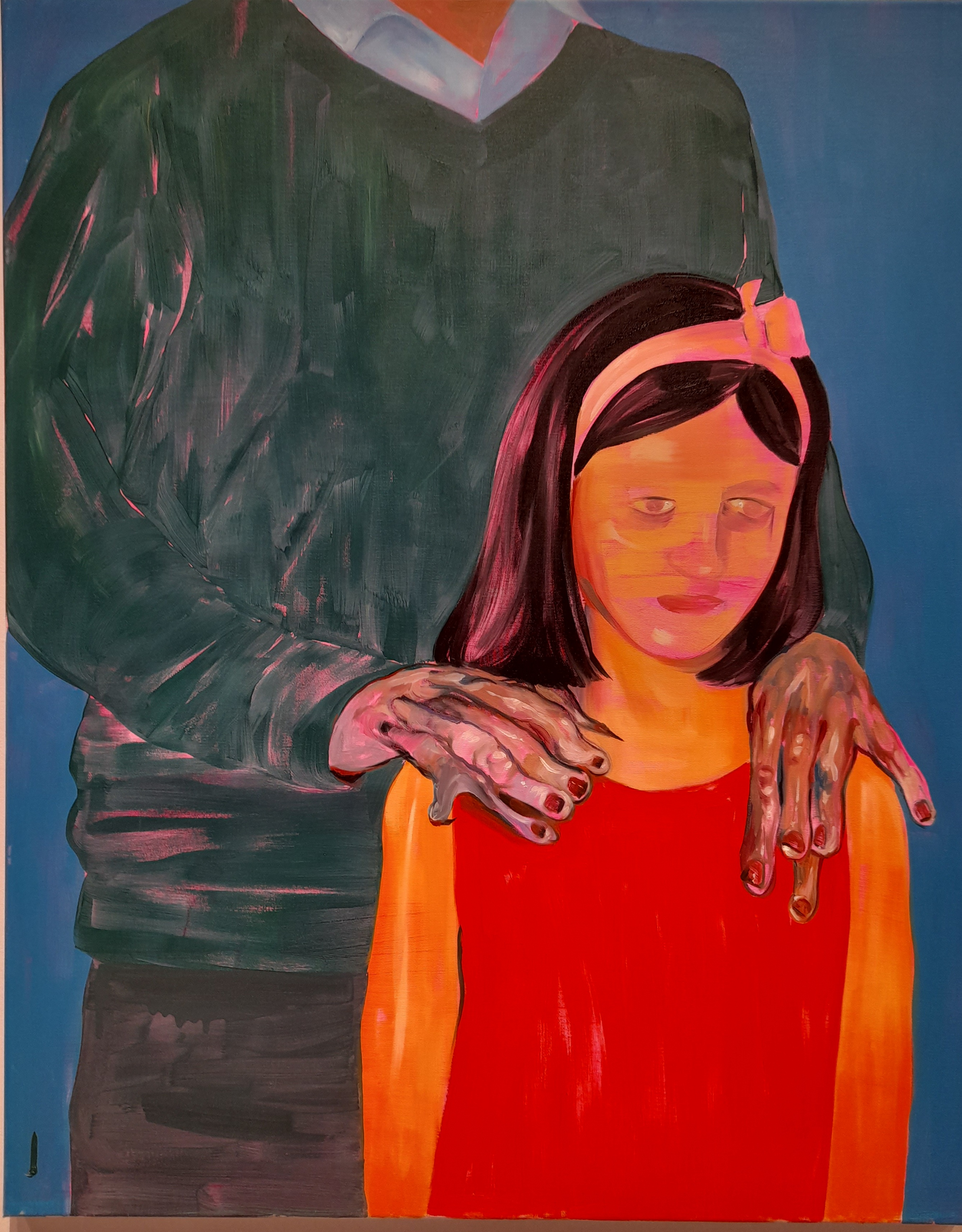 Nie zabrakło na wystawie wątku ważnych relacji rodzinnych (Helena Stiasny, Duch babci, 2020) czasem konfrontacyjnych (Monika Falkus In the Hands of Noone, 2022) a nawet traumatycznych (Alex Urban, Opiekun, 2017). Zazwyczaj wydają się one być jednocześnie lapidarną i celną figurą alegoryczną wszelkich pedagogicznych zabiegów formatujących przyszłego obywatela, czasem nawet niezwykle dowcipną jak w pracy Katarzyny Kukuły Zrobię Ci sweterek na całe życie, 2021.
