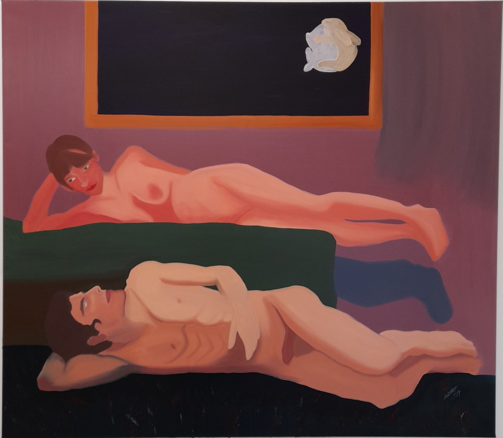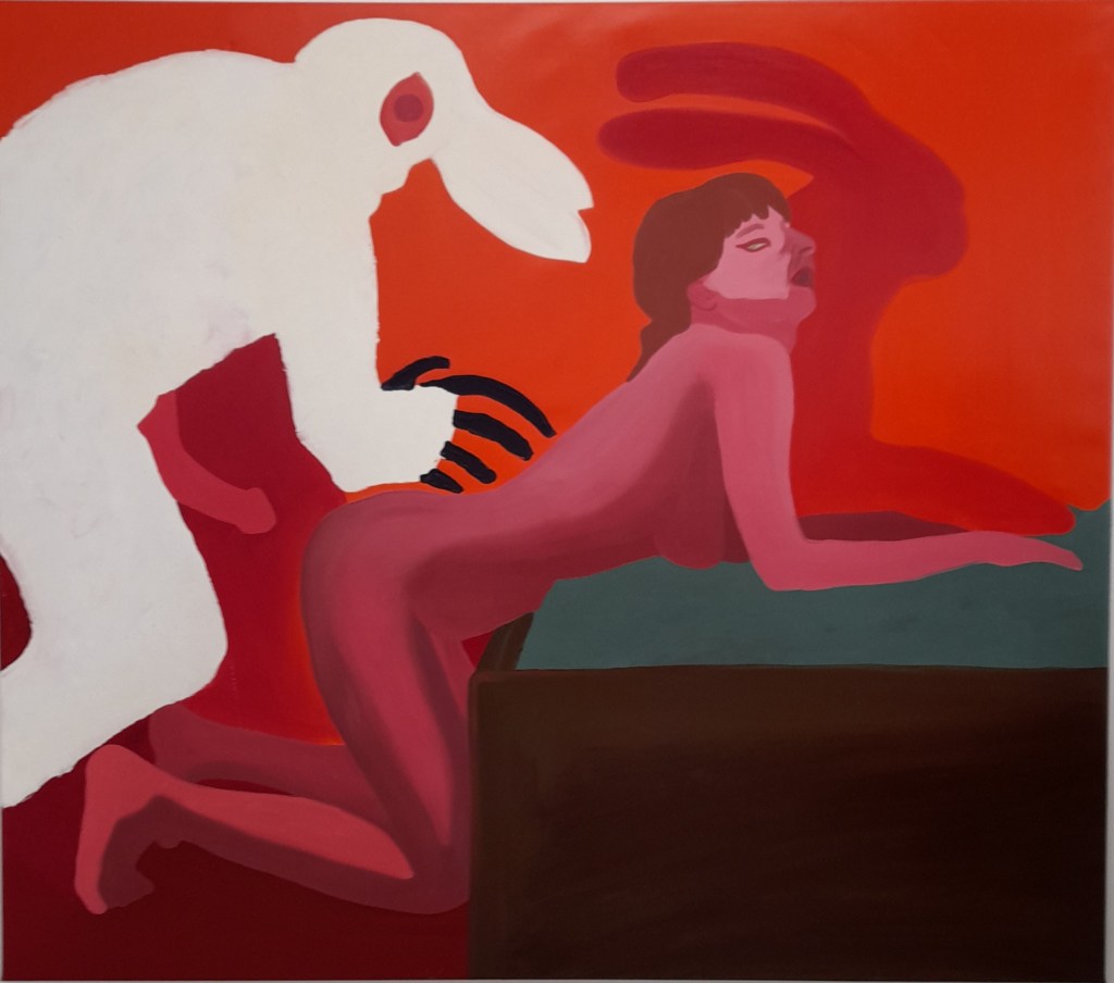 Trop trzeci, który podpowiada wspomniany wcześniej tekst kuratorski: “Rok Wodnego Królika” to pretekst dla nas wszystkich do zastanowienia się nad jakością relacji międzyludzkich, międzygatunkowych i relacji z sobą samymi. I tu wyłania się, przynajmniej w części prac obecnych na wystawie, obraz, co tu dużo mówić, depresyjny. Miejscami ów przygnębiający ton ożywia lekka perwersja z rozbrajającym poczuciem humoru, ogólnie jednak widać, że nie jest łatwo. Życie jest ciężkie. Ludzie nas ranią, my ranimy innych i samych siebie. Wernisaż trafił ewidentnie w moją zniżkę nastroju, bo powyższe konstatacje wyjątkowo mało mnie tym razem dotknęły. Za mną był tydzień pracy nad wyraz ciężkiej, a rodzina nie zawsze wspierająca.