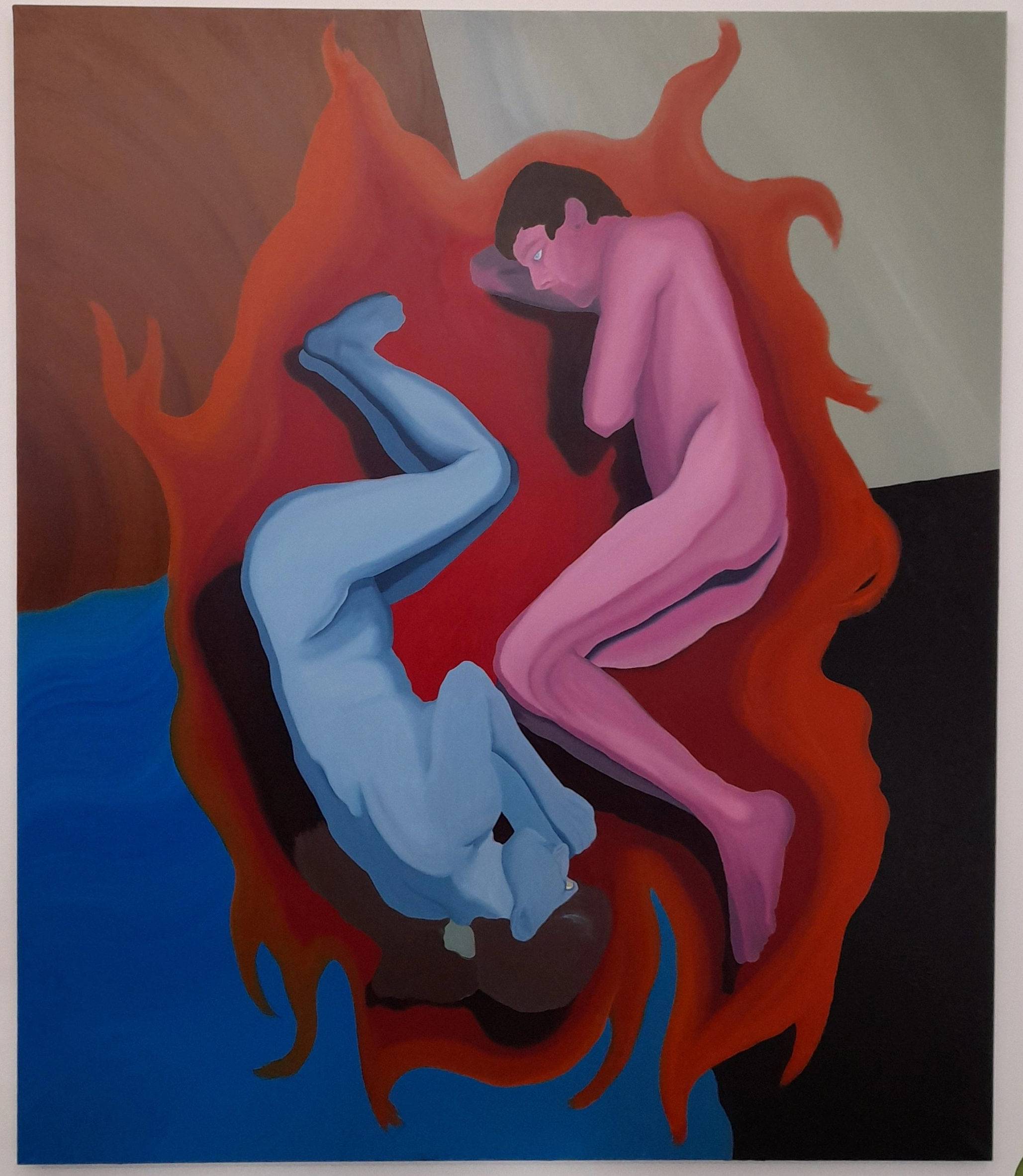Pomijając jednak powyższe wątpliwości i otwarte pytania ważne jest to, co najbardziej podstawowe w kontakcie ze sztuką – jej strona wizualna. Przy wszystkich bowiem wątpliwościach, braku intelektualnego czy też światopoglądowego powiązania między oglądającym a twórczynią/twórcą, sztuka, w tym wypadku obrazy, muszą najzwyczajniej w świecie złapać z nami kontakt. Po wejściu w przestrzeń galerii większość z nas wie, co chciałaby posiąść i z czym wrócić do domu. Mimo więc, że nie poczułam pełnego komfortu „filo-teoretyka” i nie wszystkie tropy na wystawie w BWA należycie mnie wciągnęły przyznam, doznałam tam olśnienia. Złowieszcze splątanie bajki z horrorem krzyczało do mnie i milczało jednocześnie podczas wernisażu. Niepokojąca Powiń-inność Martyny Czech (fot. na okładce) ze swoim pomieszaniem planów i percepcji wyzwoliła we mnie dreszcz i emocję. Minął tydzień, obraz dalej siedzi w mojej głowie. Właśnie dla takich magicznych wybić z rzeczywistości szwendam się po wystawach. Wam to polecam także.