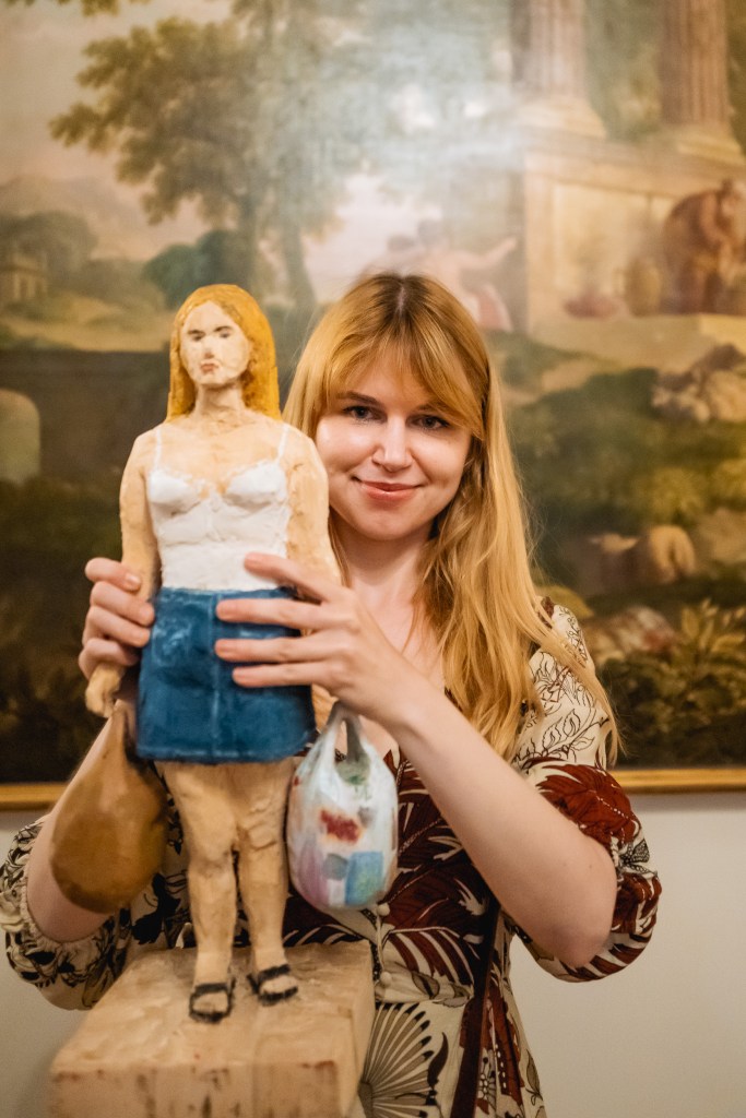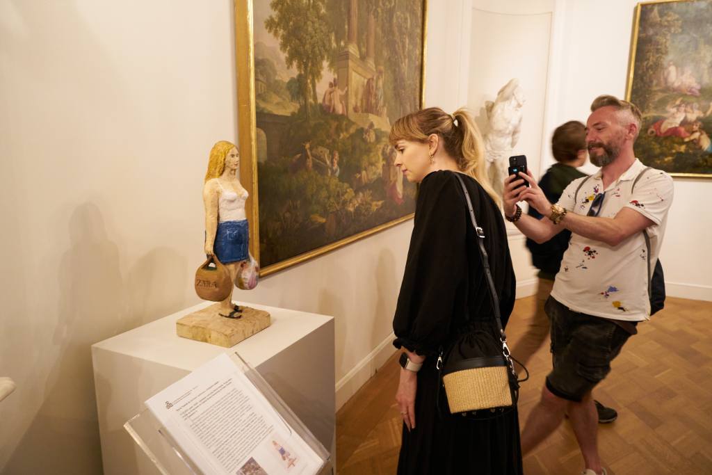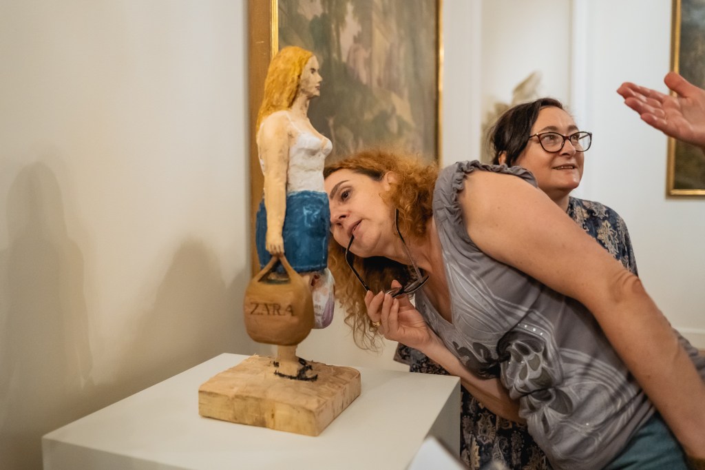 Pokaz rzeźby Marty Nadolle Sama za to zapłaciłam, drewno, 56 x 24 x 20, 2022 r. w dniu wydarzenia w Przedpokój Oficerski, Apartament Królewski