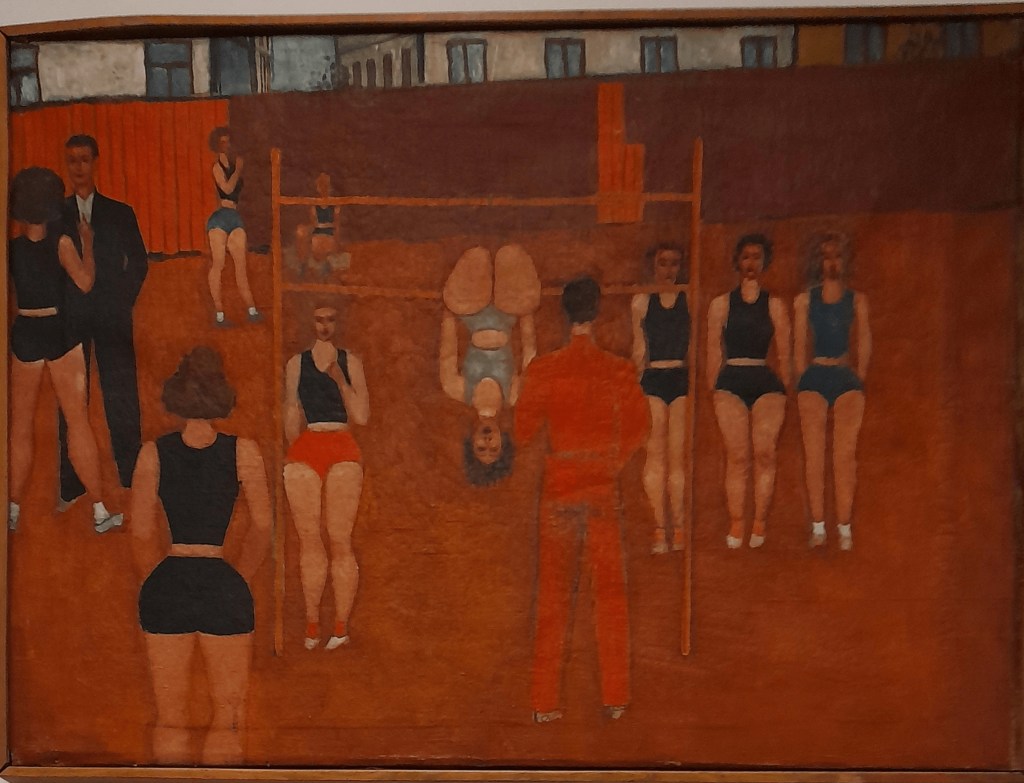 Oczywiście sportowe młode kobiece ciało pojawiało się w sztuce XX wieku już wcześniej. Pierwszym z brzegu, zwłaszcza w kontekście politycznej propagandy, są kadry z niemieckiego filmu Leni Riefenstahl o berlińskiej olimpiadzie z 1936 r. Odnaleźć je można także w mniej kontrowersyjnej twórczości tego samego okresu polskiej artystki Hanny Milewskiej, której drzeworyt Gra w siatkówkę z 1933 r. można obecnie oglądać na krakowskiej wystawie Wilno, Vilnius, Vilne 1918–1948. Jedno miasto – wiele opowieści. Nie jest zaskakujące, że kobiece ciało, ulegając artystycznym odkształceniom wedle oka kobiet o tak różnych wizjach plastycznych, czy to w stronę heroizacji, czy też ekspresjonistycznej deformacji, nie poddawane jest właściwie żadnego rodzaju erotyzacji. Podobnie nie odnajdzie się jej w animacji Ćwiczenia korekcyjne Agnieszki Polskiej z 2008 r., którą kuratorka wystawy w Fundacji Dzielna zestawiła z rzeźbami Ziętka. Nie są to więc przykłady w sztuce stanowiące dobry punkt odniesienia dla twórczości tego domorosłego artysty. Można natomiast pokusić się o przywołanie w jego kontekście obrazów jednego z klasyków polskiego malarstwa XX wieku Jerzego Nowosielskiego.