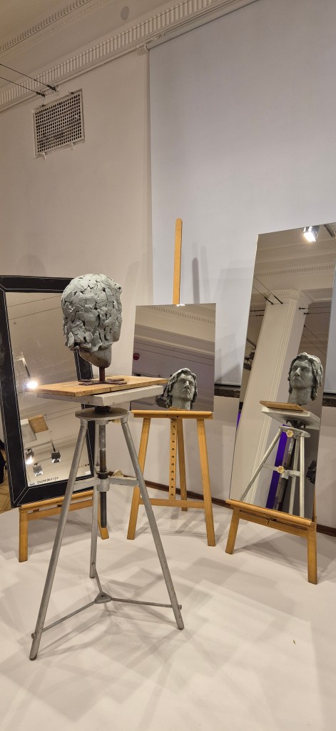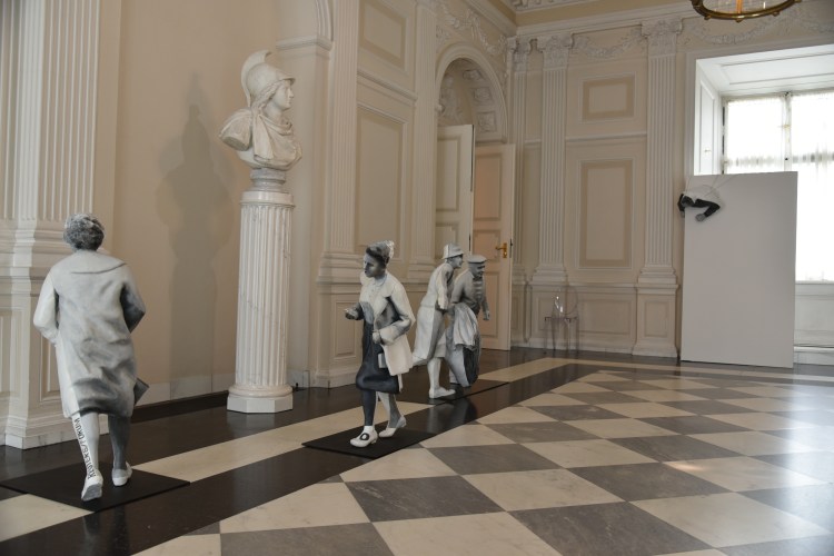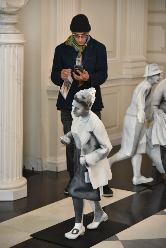 Weronika AP Anny Baumgart stoi przy pustym łóżku. Postać zakrywa twarz opatrunkiem, przed czymś ucieka. Jej monochromatyczna sylwetka i niespokojna dynamika rzeźbiarskiego ciała zupełnie nie pasują do Królewskich Apartamentów. Kobieta nie przyśniła się śpiącemu tu niegdyś władcy. To świadek zamachu w londyńskim metrze z 2005 roku – ambasadorka ofiar przemocy, zbrojnego terroru i gwałtów. „Wykrojona” z prasowej fotografii jest dziwnie realistyczna w kontekście muzealnej przestrzeni pełnej złota.
