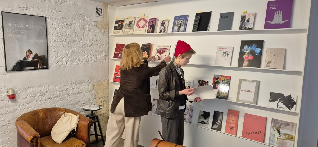 18. Program wystawy obejmuje tymczasową bibliotekę stworzoną i kuratorwaną przez Aleksandrę Pytel i Dorotę Van Vugt