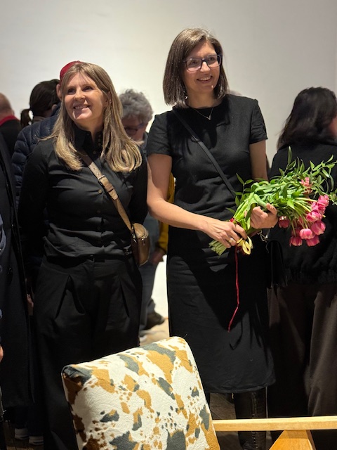 Anna Baumgart i Monika Przypkowska kuratorka wydarzenia, Zamek Królewski w Warszawie, Sala Gwardii Konnej Koronnej z widocznym fragmentem pracy artystki „Mur”, 10 maja 2025, fot. Jan Przypkowski