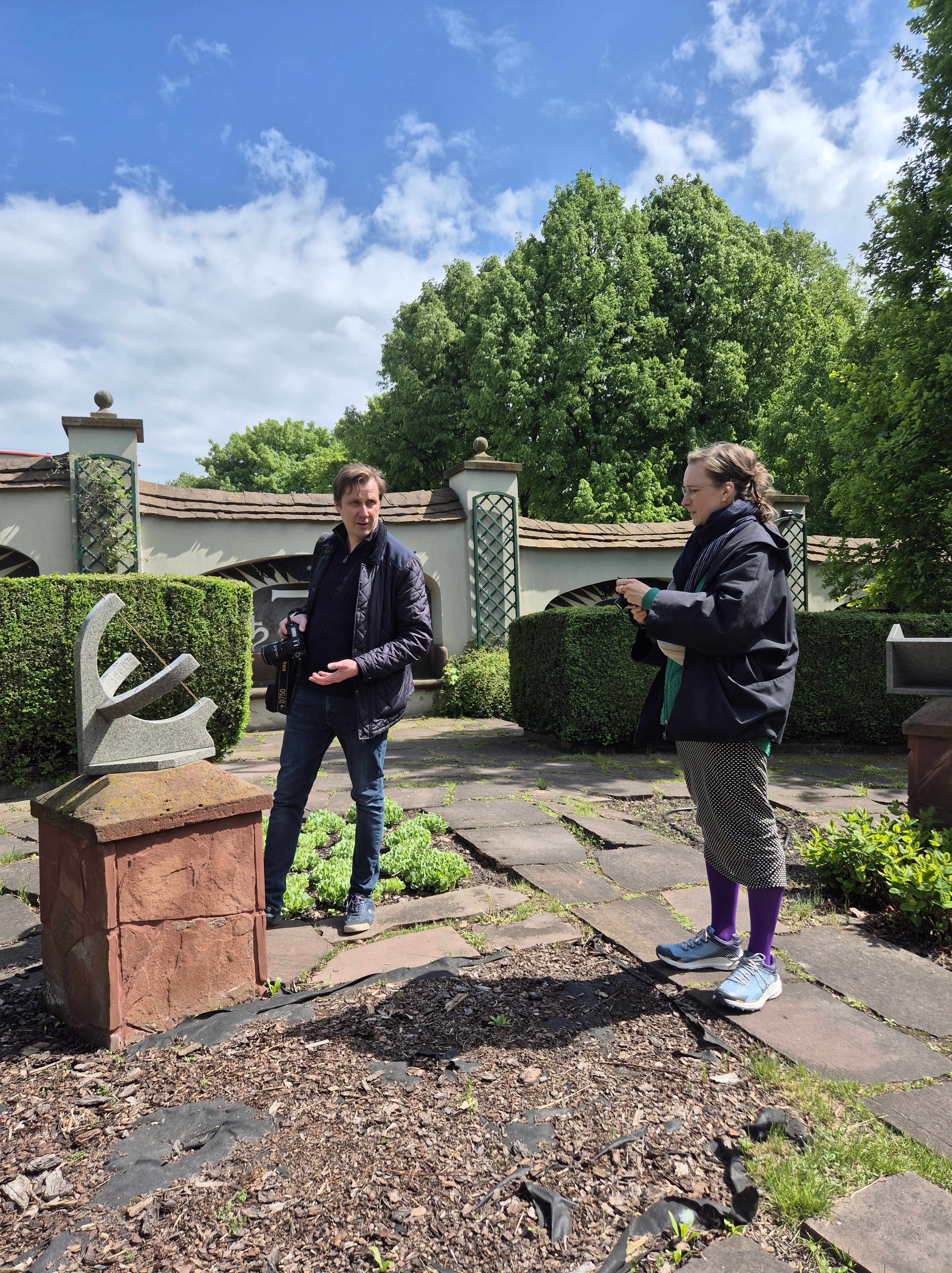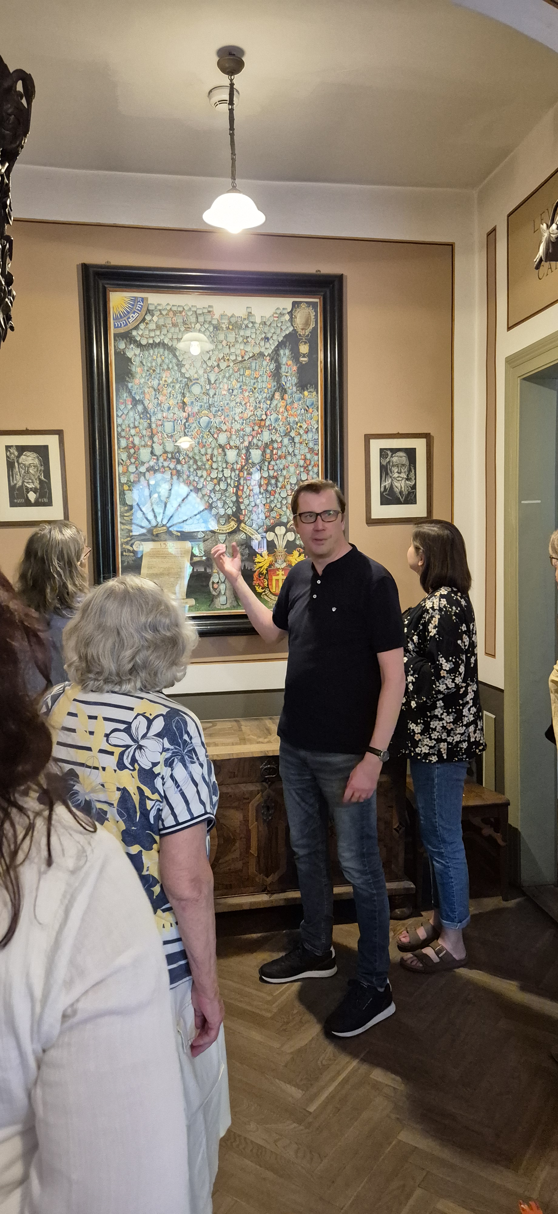 Pierwsza wizyta artystki w Muzeum im. Przypkowskichw Jędrzejowie. Alicję Bielawska oprowadza Jan Przypkowski dyrektor muzeum, 25.08.2024, fot. Monika Przypkowska/Sztukomodnie