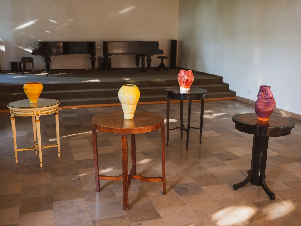 Wieloelementowa instalacja Alicji Bielawskiej w galeryjnej przestrzeni Muzeum im. Przypkowskich w Jędrzejowie jest opowieścią o czasie i rzeczach w takiej właśnie metafizyczno-antropologicznej perspektywie. Zaprezentowane przez artystkę rzeźby, tkaniny, ceramika i rysunki to – jak podkreśla ich twórczyni – autonomiczne artystyczne obiekty, które pozostają jednak we wzajemnych relacjach. Kształty obiektów nawiązują do przedmiotów codziennego użytku, przeskalowanych lub przekształconych przez pamięć. Powracające w różnorodnych technikach kolory i formy tworzą tu swoistą axis mundi. To oś kosmosu przecinająca codzienność – punkt zatrzymania czasu, czyli, jak niegdyś wierzono, miejsce, gdzie następuje kontakt tego, co było i tego, co będzie.