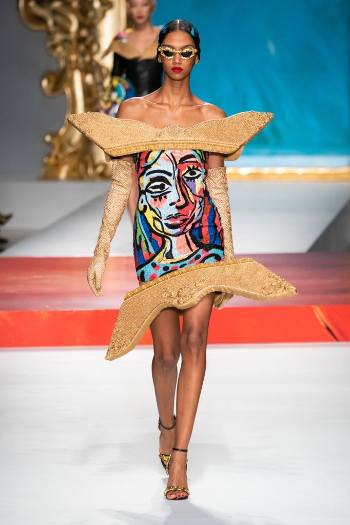 Ujmę to tak: walczą we mnie: historyk sztuki i stylistka. Ta druga uwielbia wybiegowe show. Tu musi się dziać, zwłaszcza jeśli imprezę rozkręca Jeremy Scott. Amerykanin w Paryżu rozrabia z popkulturą na całego i to od samego początku. I dobrze. Takie są reguły gry i kto chwyta ten klimat ten wie, że pokaz kolekcji jest rodzajem przedstawienia. Co innego jednak cytować w swoich kolekcjach elementy popkultury a co innego zdobić się w pióra cudzej sławy, w tym przypadku samego mistrza Picassa.