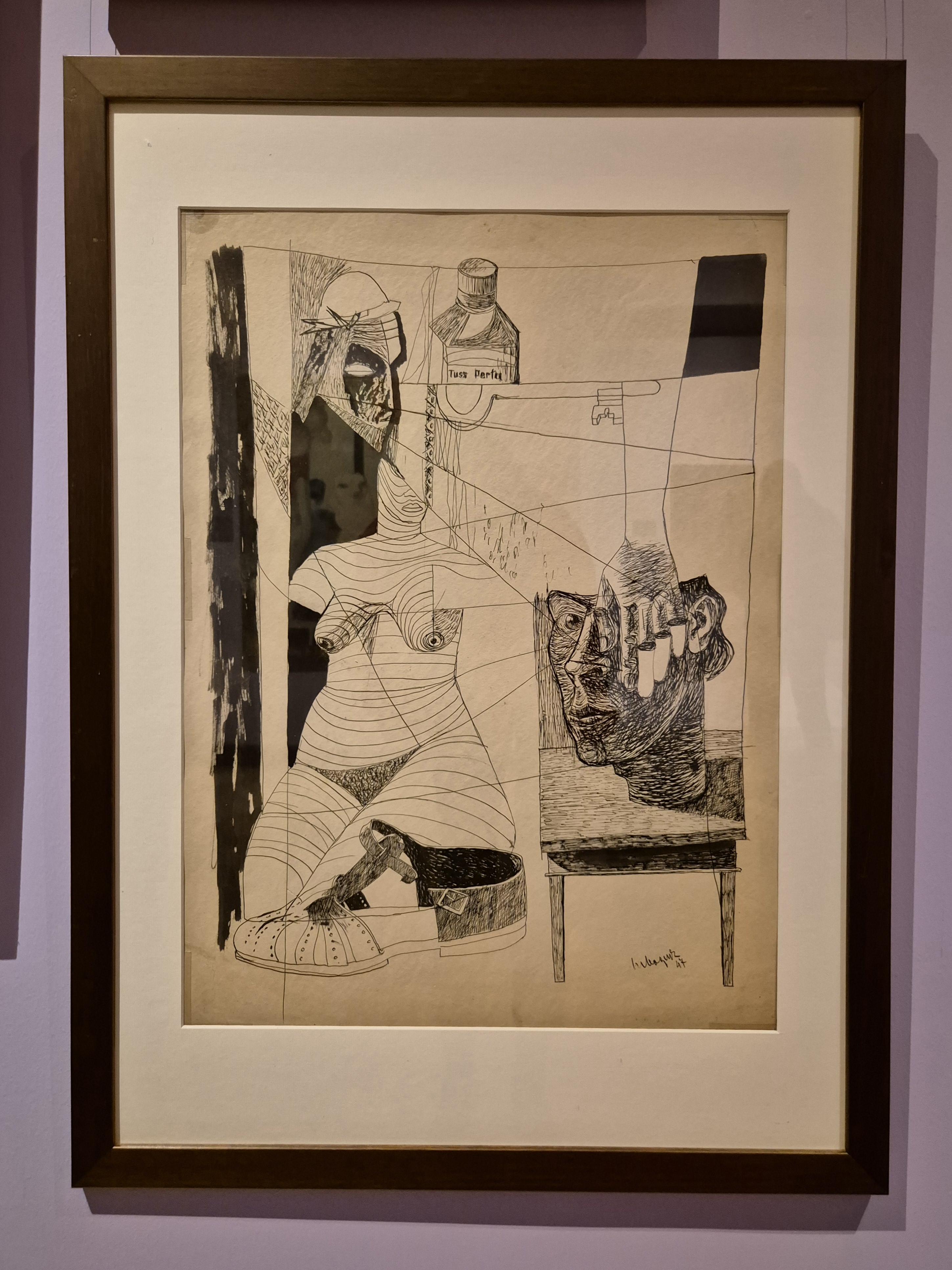 Z końcem lat 40., obok abstrakcyjnych kompozycji zapełnionych charakterystycznymi trójkątami, Nowosielski powraca do figuracji. Wśród kilku wątków pojawia się wyraźnie motyw musztrowanego i dyscyplinowanego kobiecego ciała. W kolejnych odsłonach