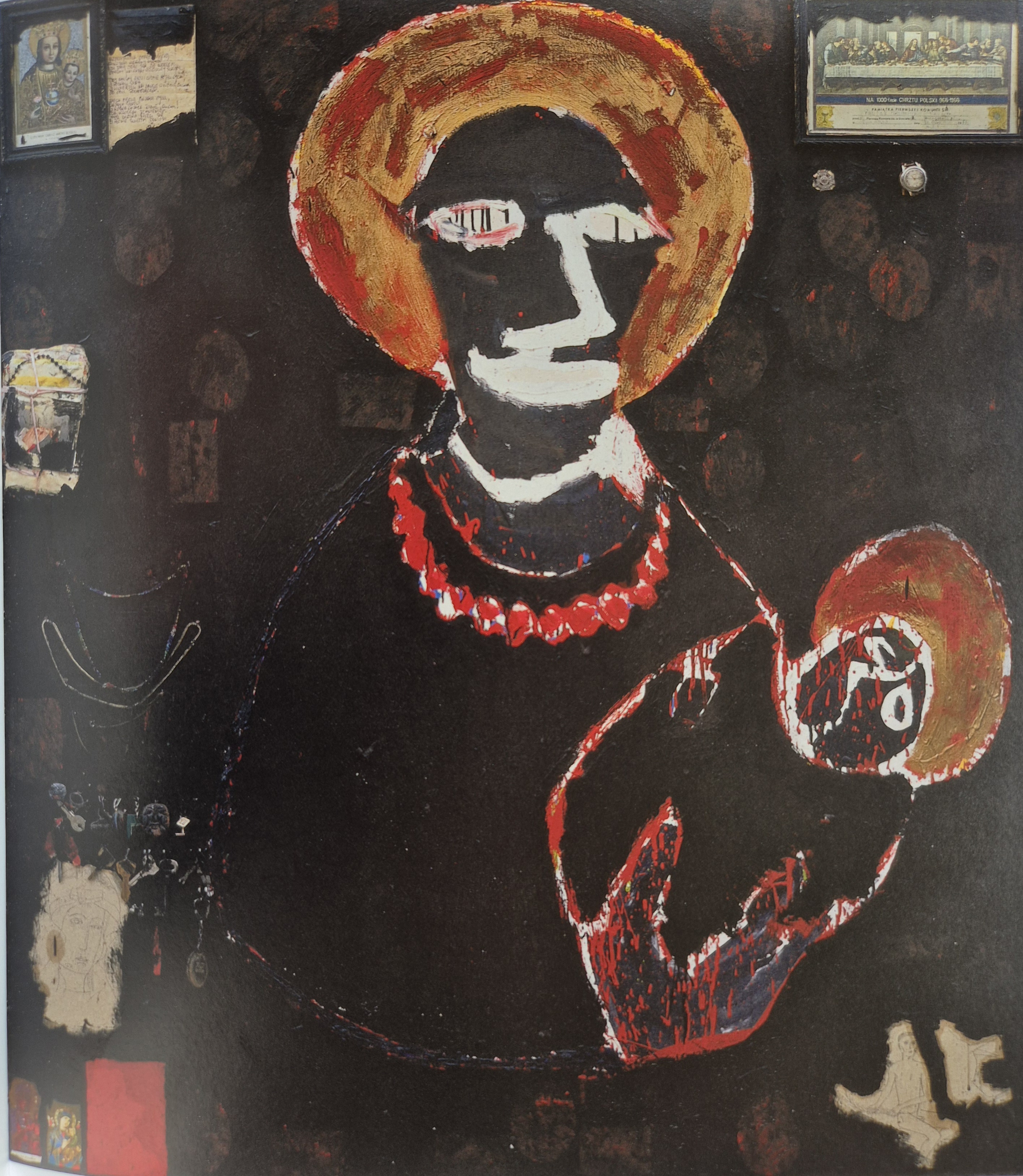 obrzeżach obrazu, w bordiurze inspirowanej wielkopiątkową ikoną św. Praksedy, gdzie