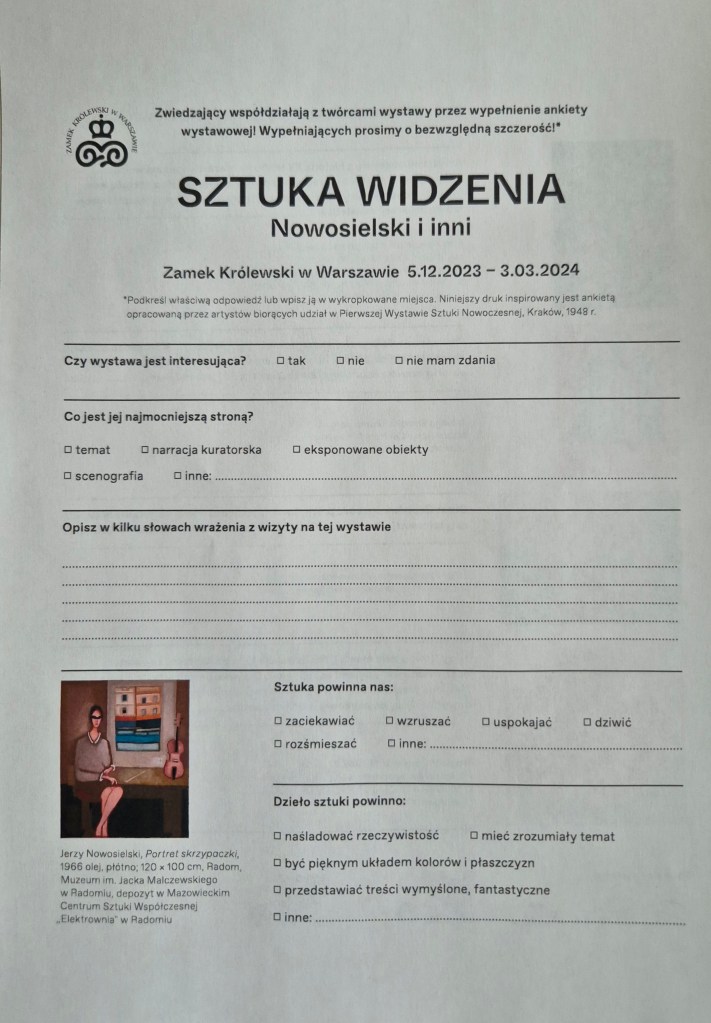 Esej pochodzi z katalogu wystawy Sztuka widzenia. Nowosielski i inni, Zamek Królewski w Warszawie (5.12.2023 -10.04.2024), której byłam kuratorką wraz z Pawłem Witkowskim ze strony współorganizatora wystawy Mazowieckiego Centrum Sztuki Współczesnej „Elektrownia” w Radomiu.